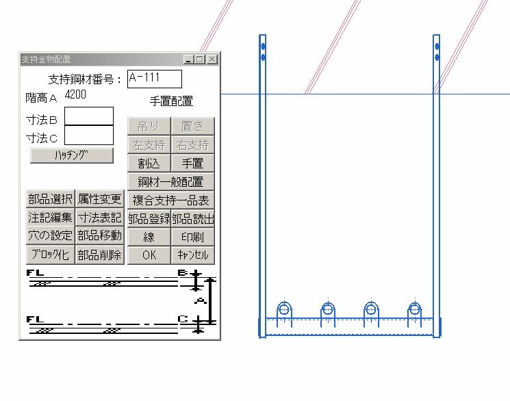 DXFファイルで、データを取り込み、系統別に自動継ぎ手を発生させ、アンカー等も自動的配置を行います。